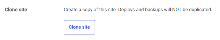 Clone site feature June 11, 2018 By: Claudio Benvenuti In: Product changelog - We just released the possibility to clone a site. This can be very usefull for creating “blueprint” websites or for debugging purposes. You will find the “Clone site” button under the site settings. Tags:feature « Can I “mount” an HardyPress static site on a subfolder of my existing site? Docker environment resources upgrade »