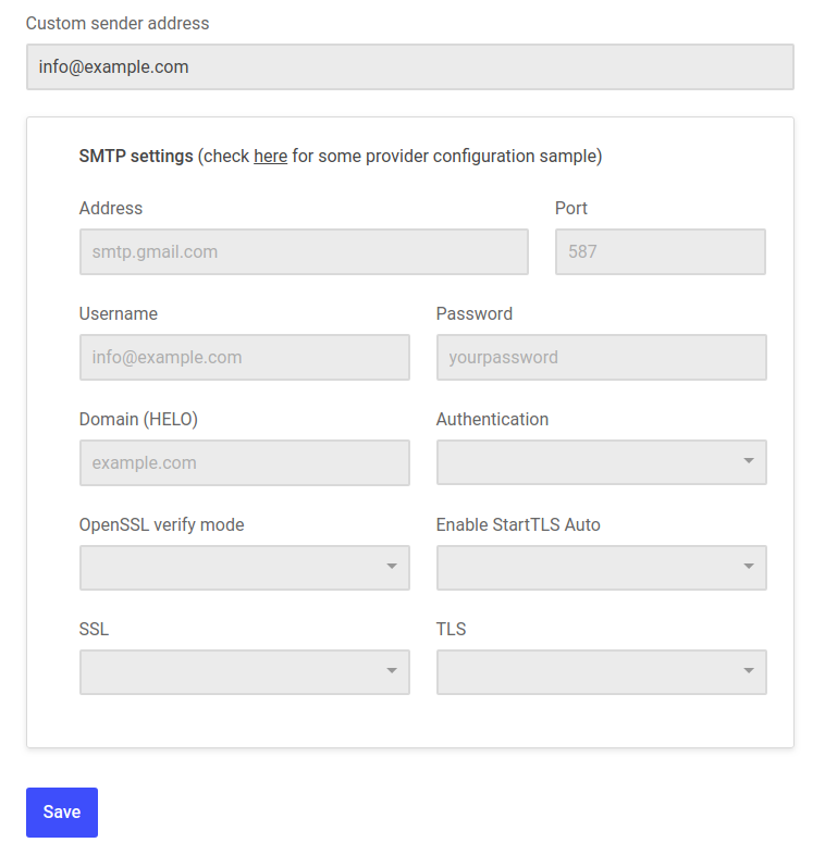 You can find some SMTP settings examples here.